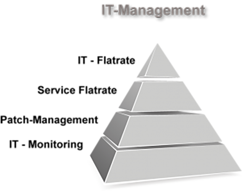 IT-Management ist in mehreren Stufen aufgebaut. Jede nächst höhere Stufe enthält alle vorhergehenden Stufen automatisch. Wie gut Ihre Absicherung sein soll, können Sie so jederzeit selbst bestimmen: